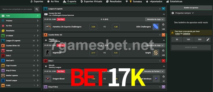 A aposta Bet17K oferece aos jogadores a experiência mais conveniente de apostas em eSports!